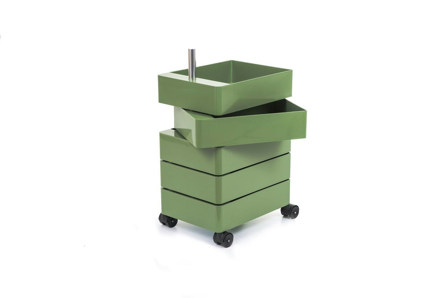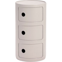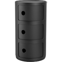 Wer über Design-Container spricht, kommt an Componibili von Kartell nicht vorbei: stapelbar, rund, in vielen Farben – und seit Jahrzehnten ein Favorit bei denen, die es grafisch mögen. Im Kontrast dazu die modulare Klarheit der USM-Haller-Container : aus verchromtem Stahlrohr, mit abschließbaren Klappen und individuell konfigurierbar. Auch Castelli – etwa mit dem „Boby“ – bietet ikonische Modelle, die auf Rollen, mit Schubladen und Seitenfächern höchste Funktionalität mit charakterstarkem Auftritt verbinden.
