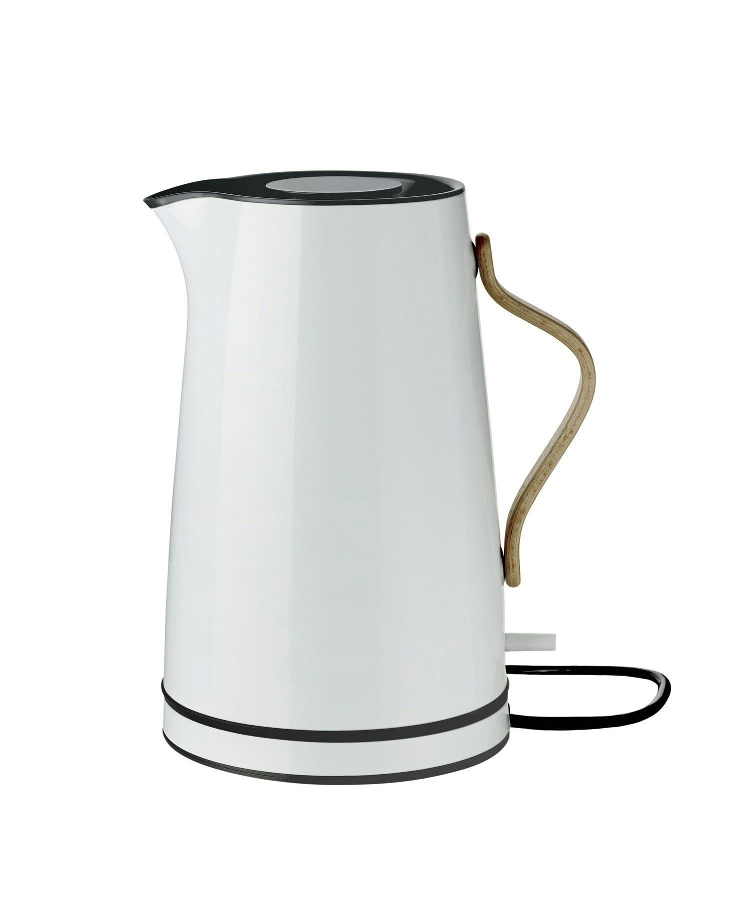 Der Emma Wasserkocher von Stelton nach einem Entwurf der beiden Designer Sebastian Holmbäck und Ulrik Nordentoft ist so schön, dass man ihn nicht verschämt in einer Küchenecke verstecken muss. Er ist aus hochglanzlackiertem Edelstahl gefertigt und besitzt einen gebogenen Griff aus Buchenholz. Auf der technischen Seite besitzt er einen Kalkfilter, eine isolierende Doppelwand und eine Trockenlaufsicherung. Erhältlich in mehreren Farben